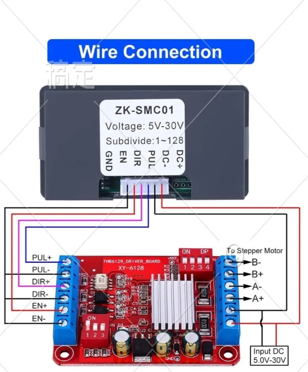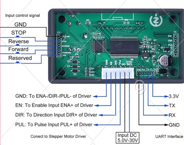 Контроллер шагового двигателя может регулировать угол, скорость, направление и время задержки двигателя. Разрешение микро-шага может достигать 1/128, что позволяет более точно управлять двигателем.