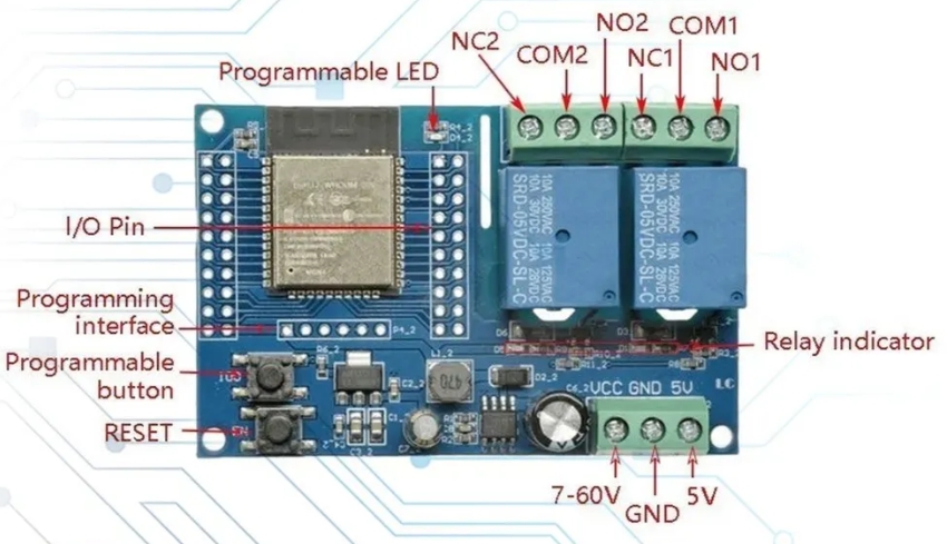 Модуль реле на базе ESP32 с поддержкой Wi-Fi и Bluetooth/BLE предназначен для создания систем удалённого управления и автоматизации. Устройство работает от напряжения 5–60 В и доступно в вариантах с 1, 2 или 8 каналами реле. Интегрированный чип ESP32 обеспечивает три режима связи: Wi-Fi, классический Bluetooth и BLE (низкое энергопотребление), что позволяет использовать модуль как в локальной сети, так и с мобильными устройствами. Поддержка программирования через Arduino IDE и совместимость с другими модулями ESP32, датчиками и платами расширения делают его гибким решением для разработки IoT-устройств.